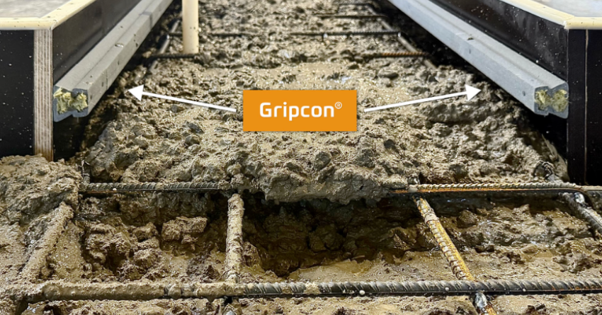 A Gripcon egy előregyártott betonba integrálható rögzítősín (embedment strip), amelyet már a gyártás során beépítenek a beton elembe. Az anyaga egy újrahasznosított műanyagból és faforgácsból származó cellulózszálból készült kompozit, amely viselkedésében nagyon hasonlít a betonhoz – például hőmérséklet-állóság és vízállóság szempontjából.